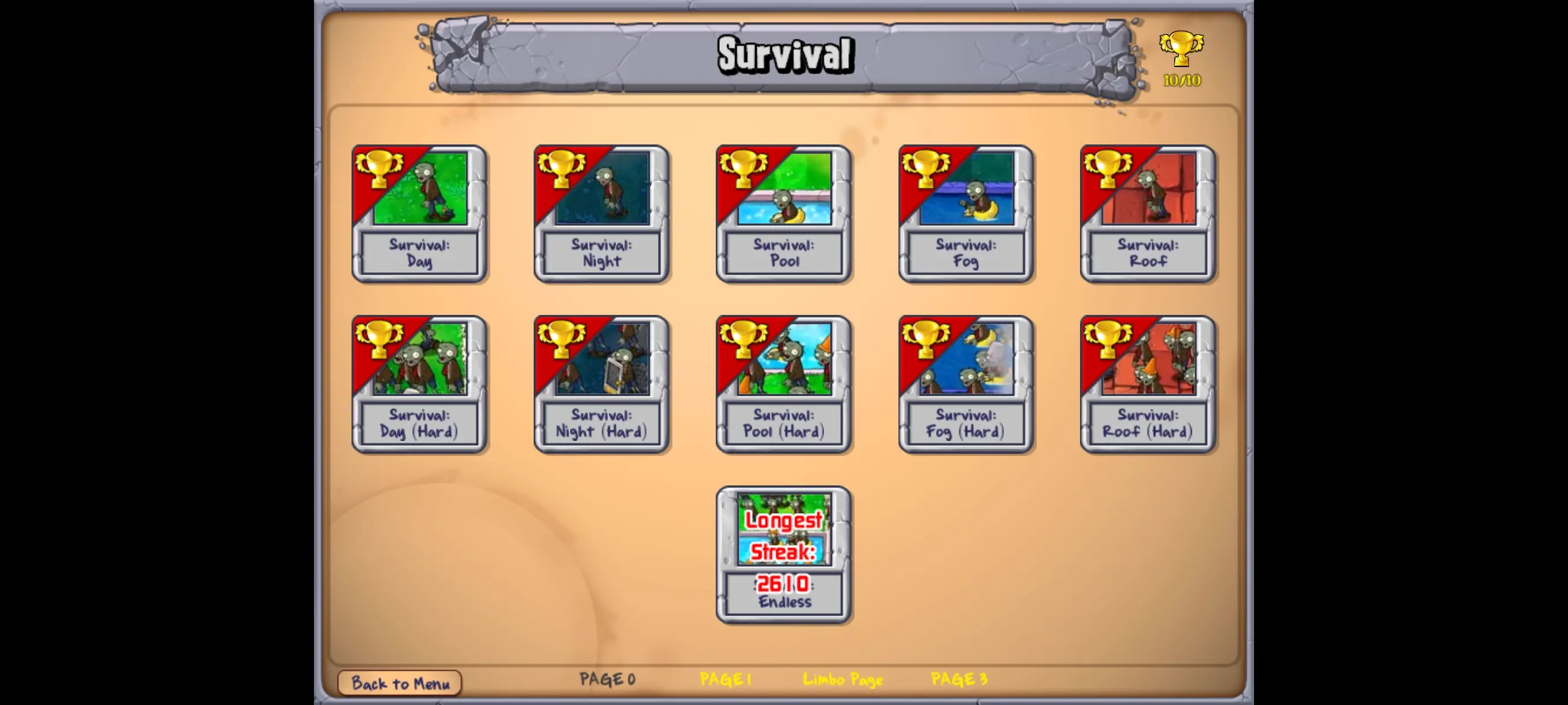 | 生存·浓雾(无尽) | 生存·泳池(无尽) | 生存模式关卡选择 |